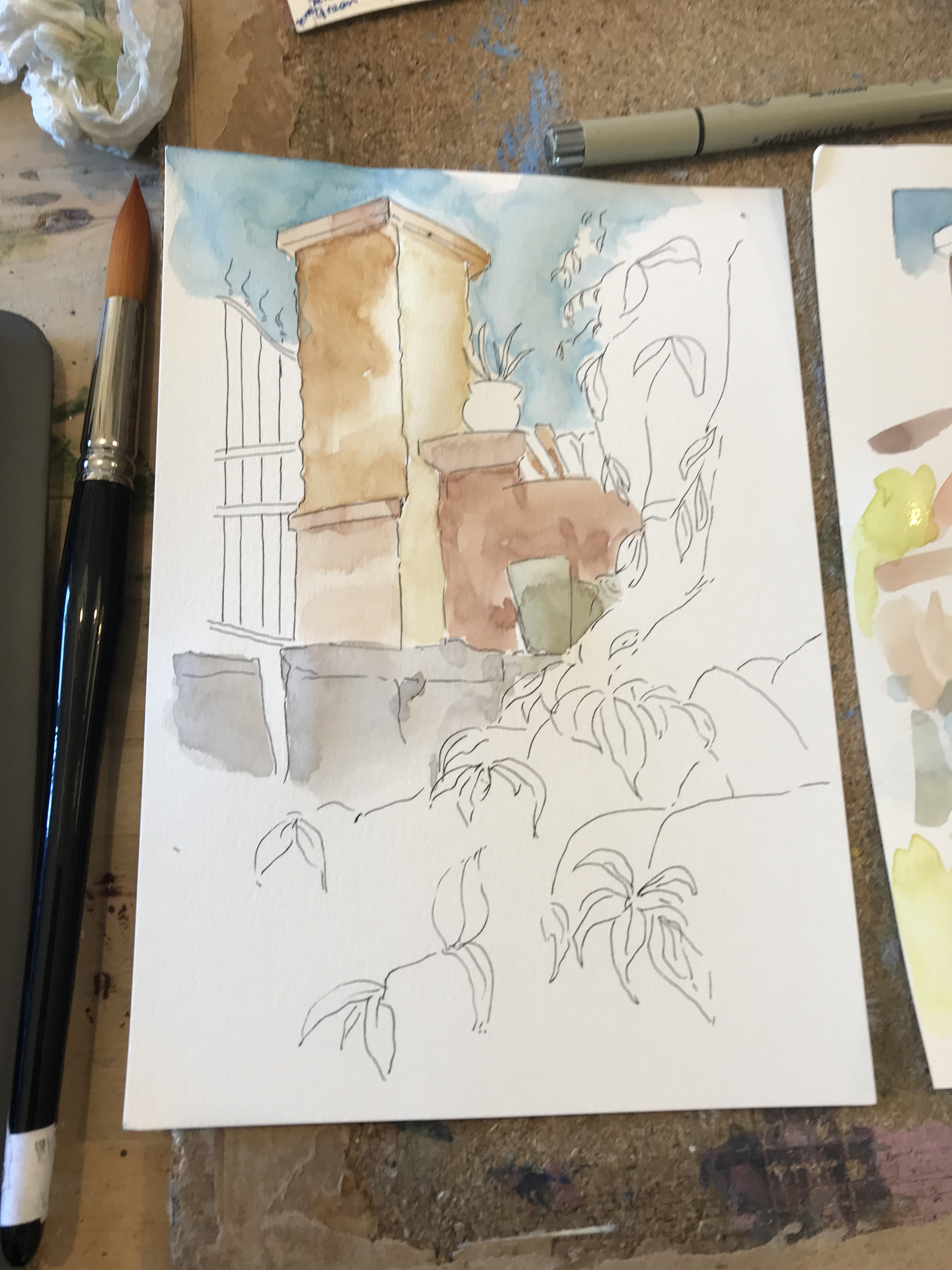 Headed off for a full day in the studio today. I’m not sure really whether I’m learning anything or not. I’m trying to of course but compared to the others here who have been painting for years and years I’m most definitely a novice. So we all continued on until lunch.