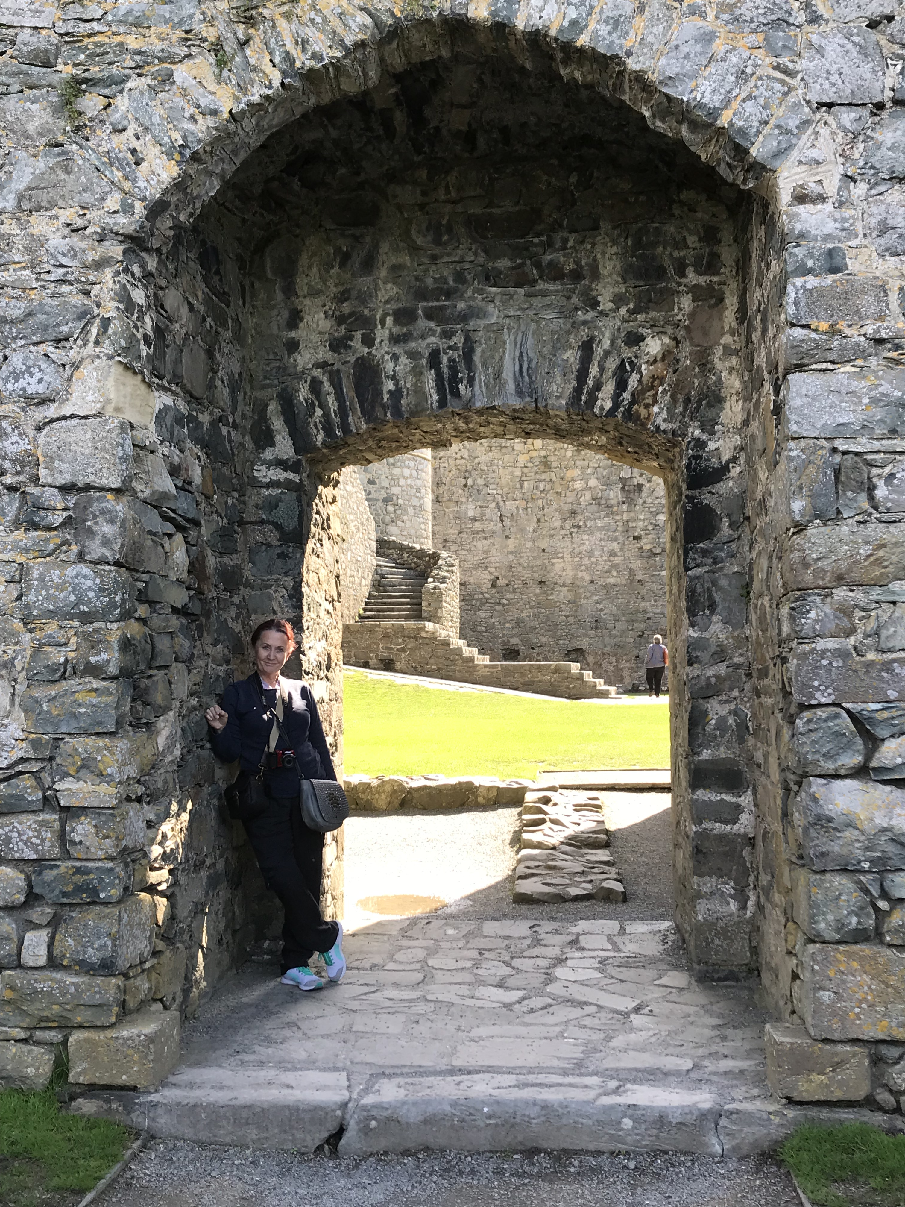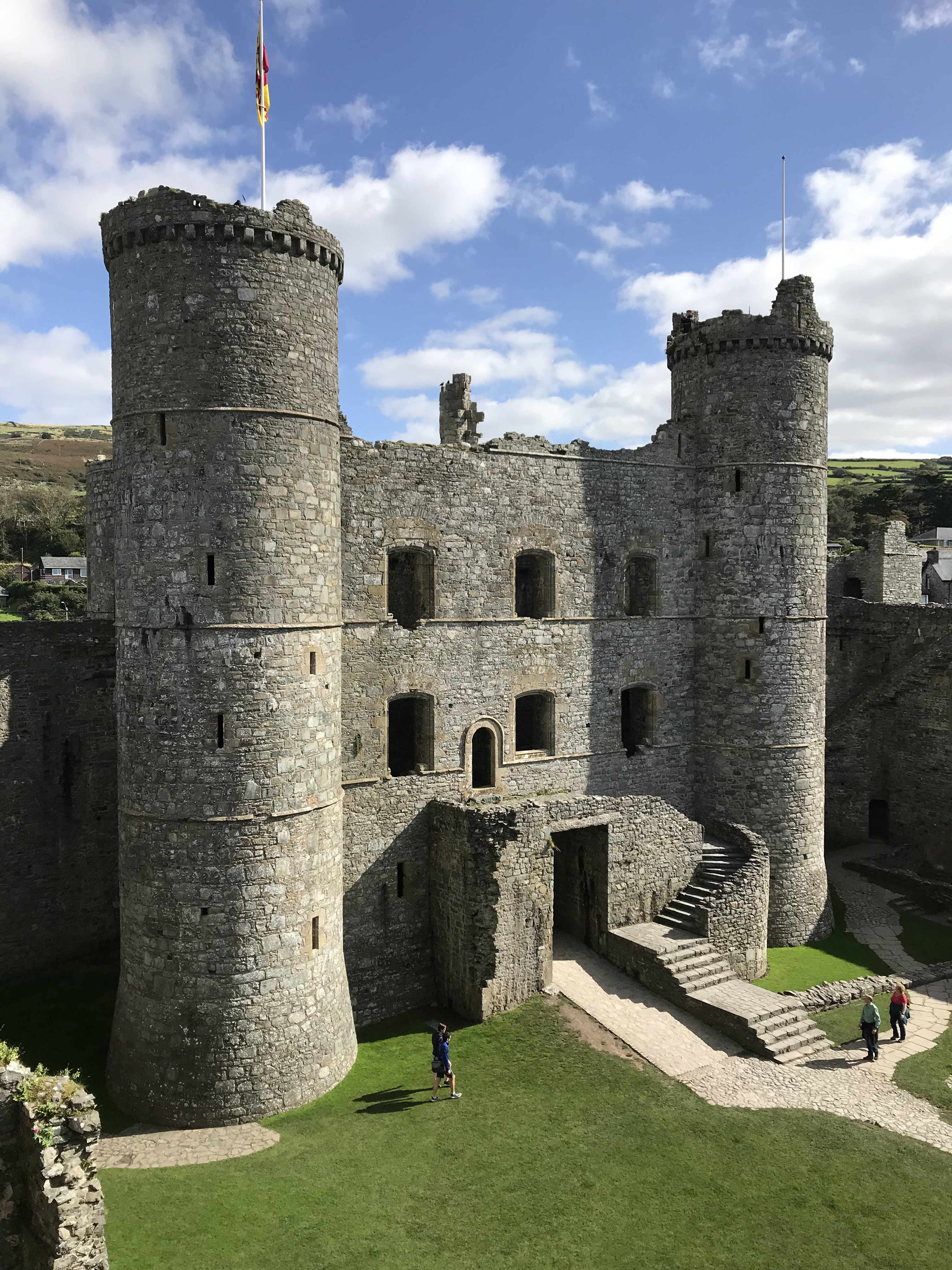 The scenery is breathtaking in Wales. When we reached Harlech we went into the castle. Managed the gazillion steps (puffing towards the top) to the ramparts only to find that an old couple (the lady was 89) were up there and a young couple with a baby (the young mum had a brace on her leg and using crutches!). Wow. Good effort.