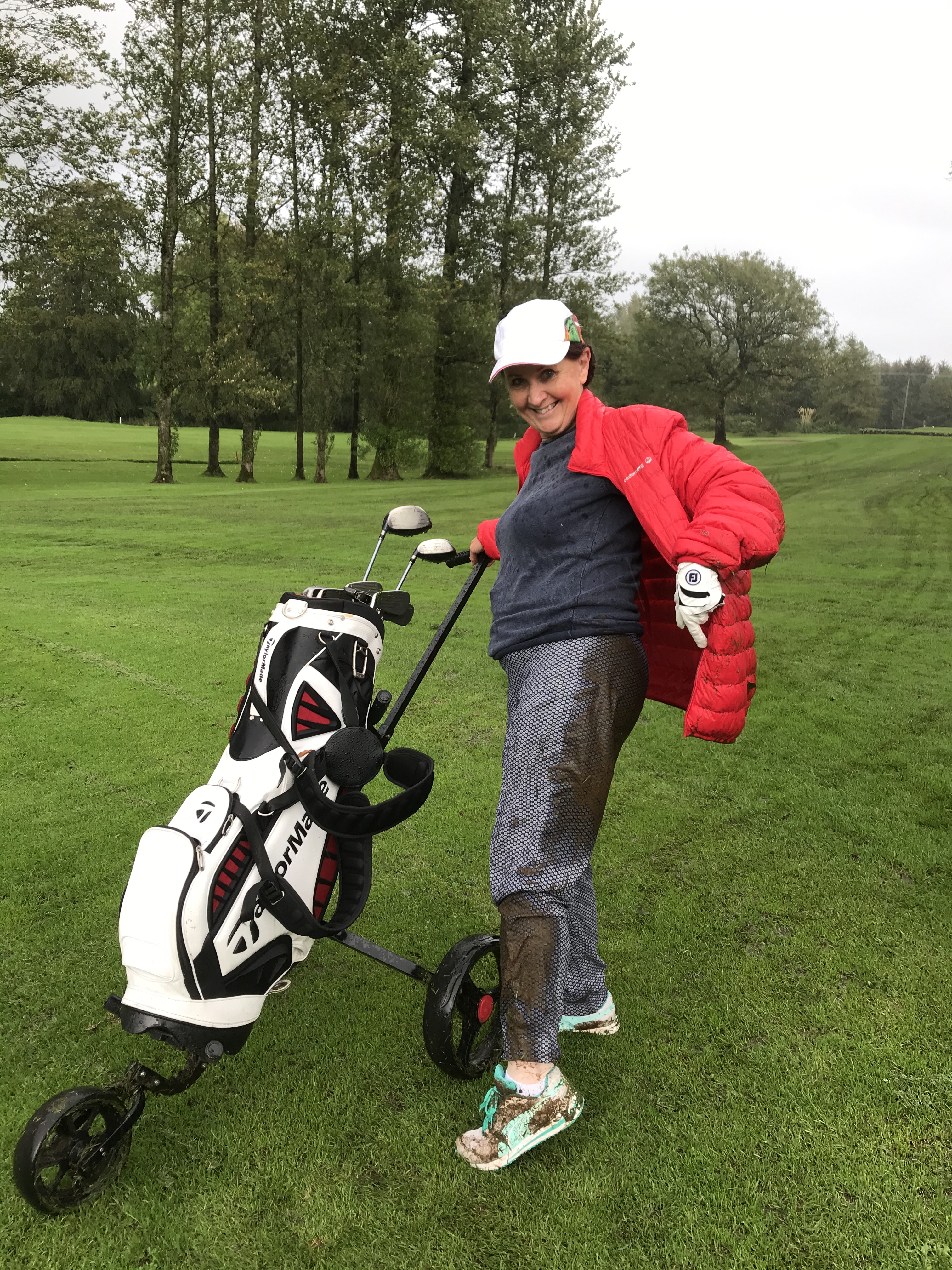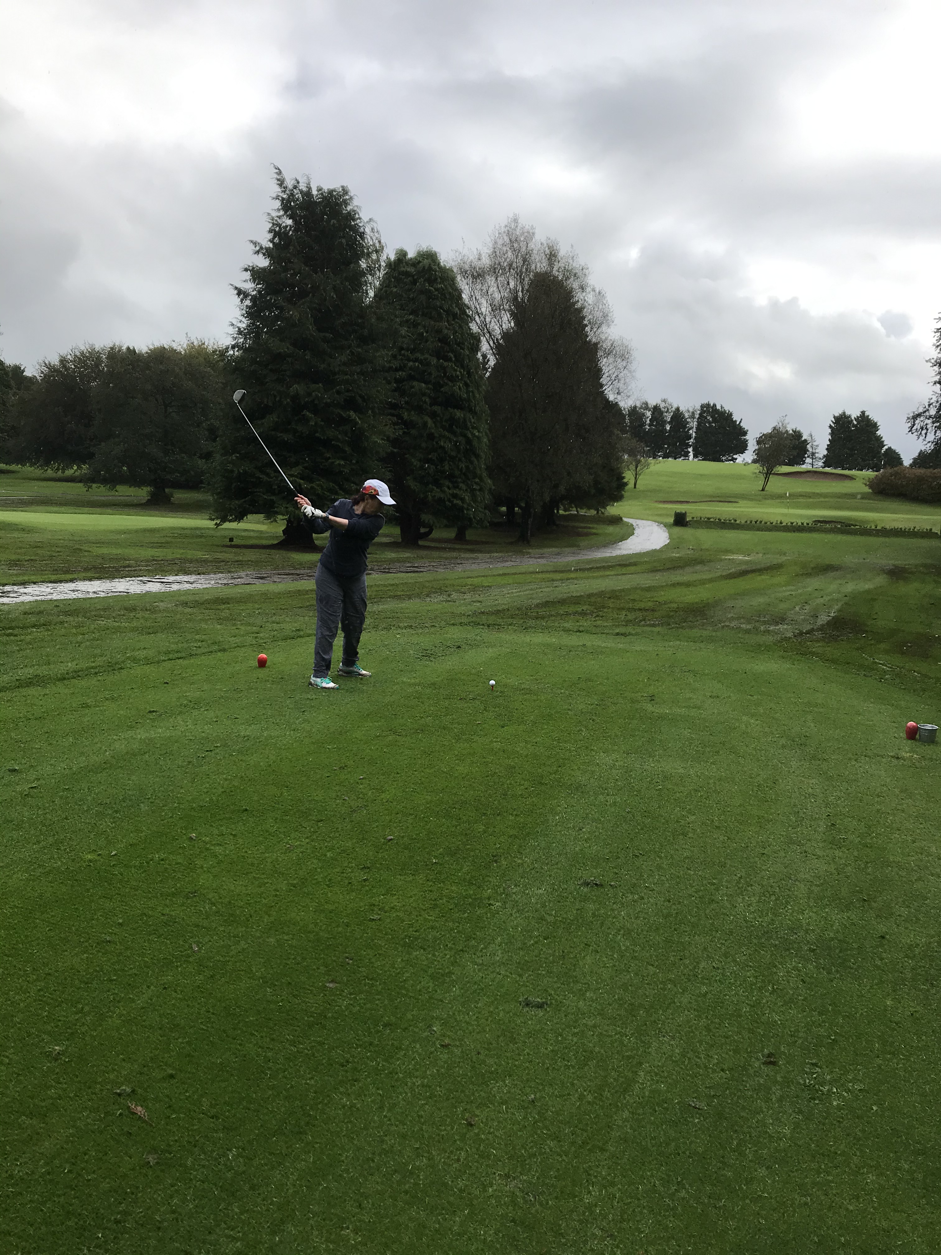 I basically threw the money at them,grabbed my borrowed clubs/sticks and buggy(trolley) (I’m always using the wrong word/golf terminology). And joined two of the loveliest ladies for half a round of golf. It was SUCH a picturesque course. Manicured fairways and sandpits (bunkers) spectacular views with plenty of intermittent rain.