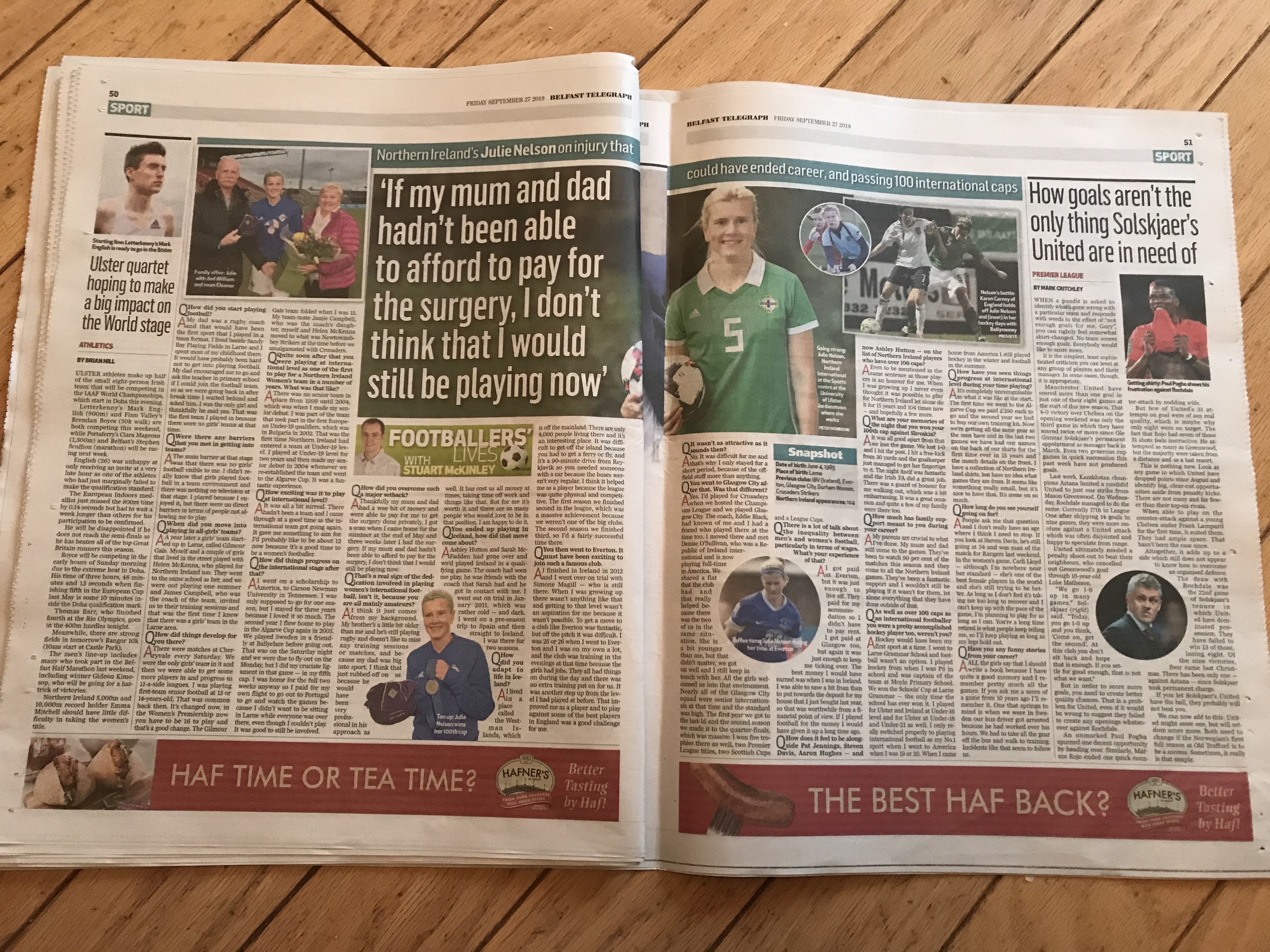 I’d had a message from Eleanor so I whizzed across ‘Sandy Bay’ and caught up with them both. Given I see them every few years there was a bit to talk about and one important item was that in today’s paper there was a two page spread of their daughter Julie who plays football(soccer) for All Ireland and has 100 caps. So I’m very pleased to say I knew this sportswoman when she was a little girl. Great to see her success.