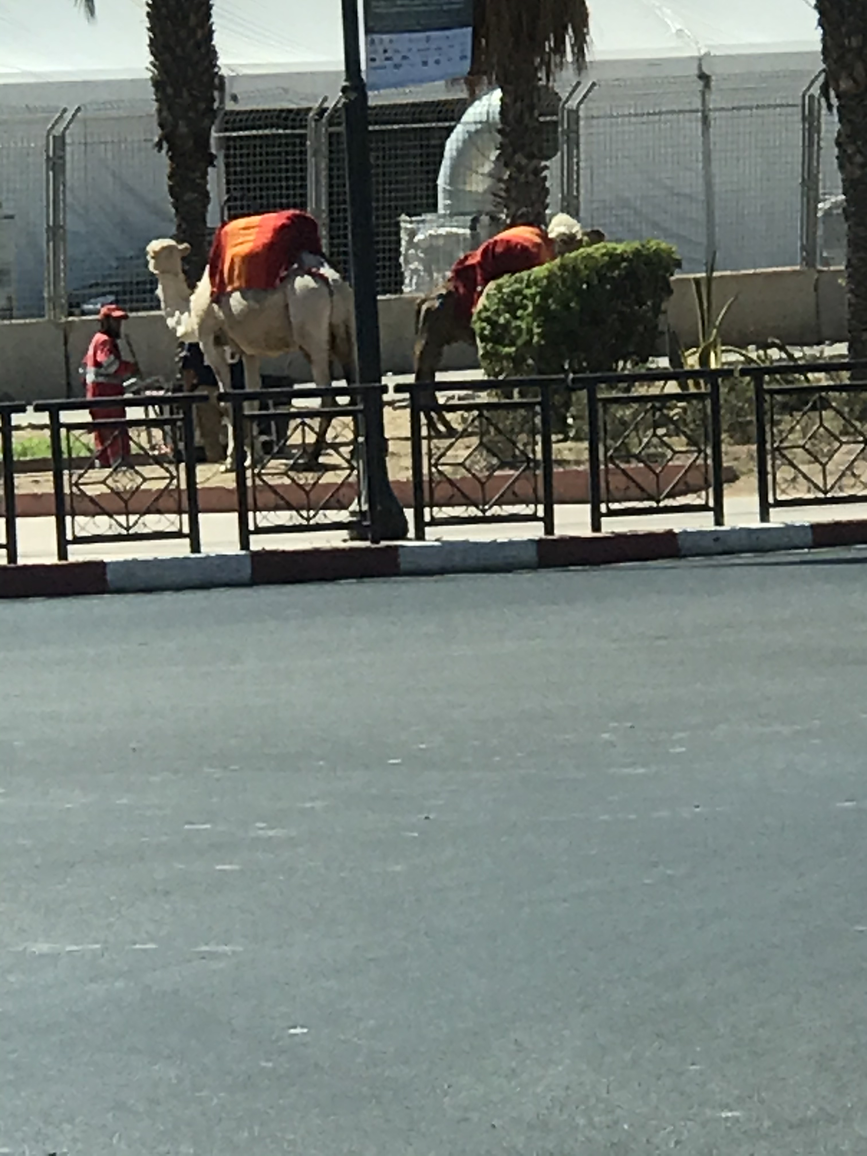 As we arrived into Marrakech there was a noticeable difference in the style of building and the traffic resembled the process of braiding hair(for those of you who know what I mean). Somehow the traffic seems to perform a magical dance which entwines itself and undoes itself without effort except using the horn (or claxon as it’s called here). Miriam said when they sold you a car they said good car, good horn and good luck. Haha.