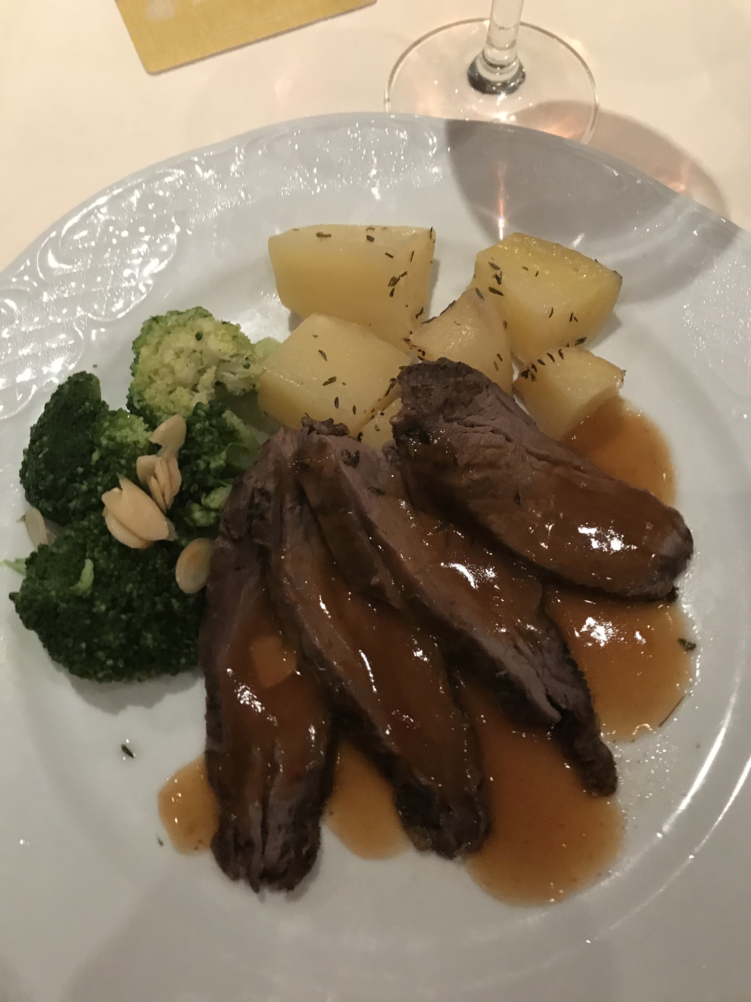 The food wasn’t great (again) but it was Mediterranean night so the tables were nicely set and the waiters came out with food whilst singing.